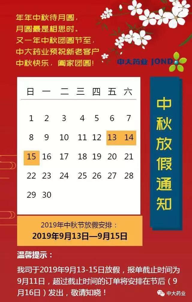 中大藥業(yè)祝新老客戶中秋快樂、闔家團(tuán)圓!