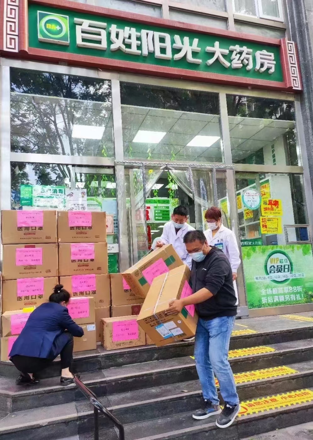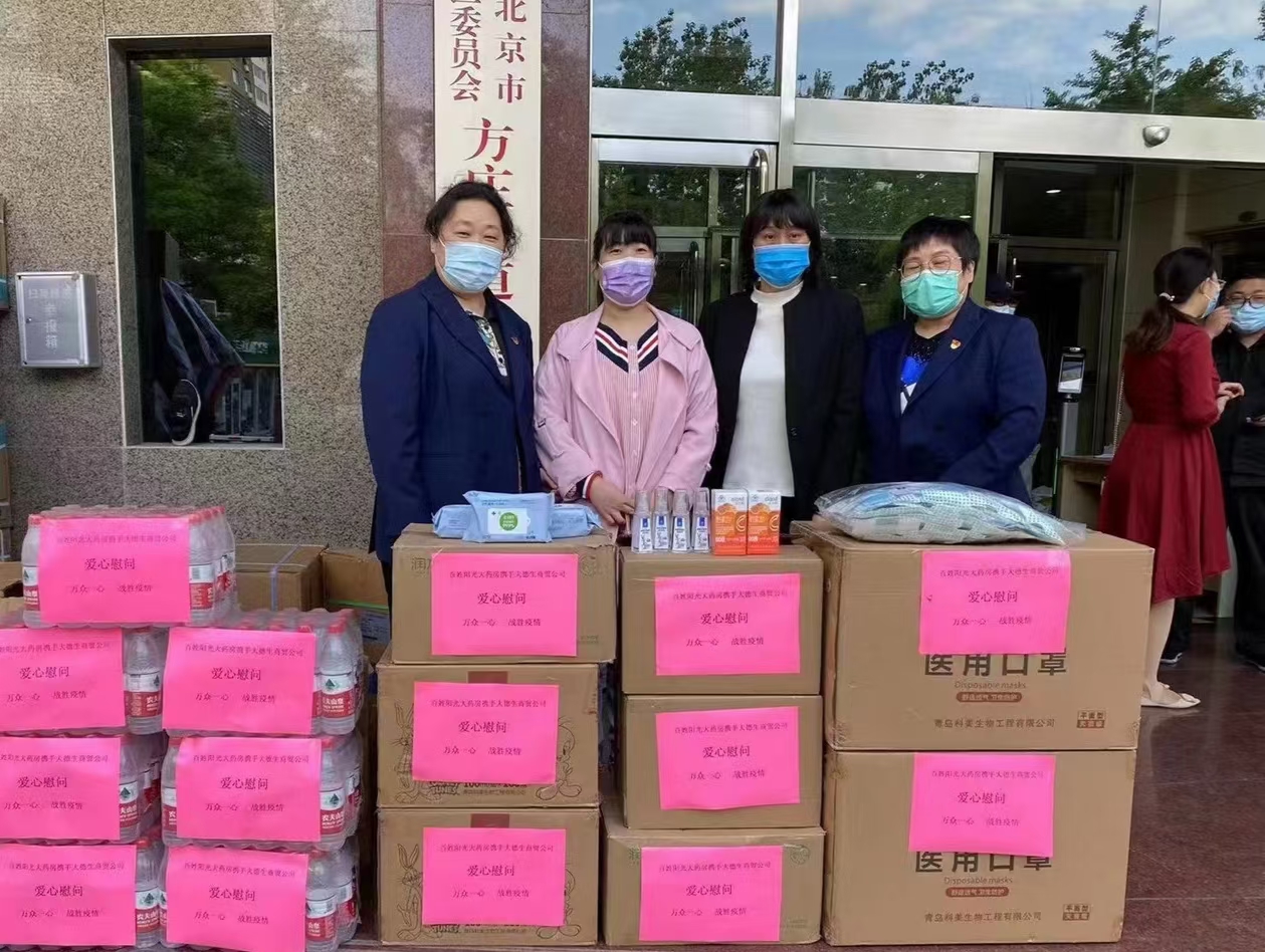 北京百姓陽光大藥房慰問北京抗擊疫情第一線辛勤工作的大白和社區(qū)工作者。